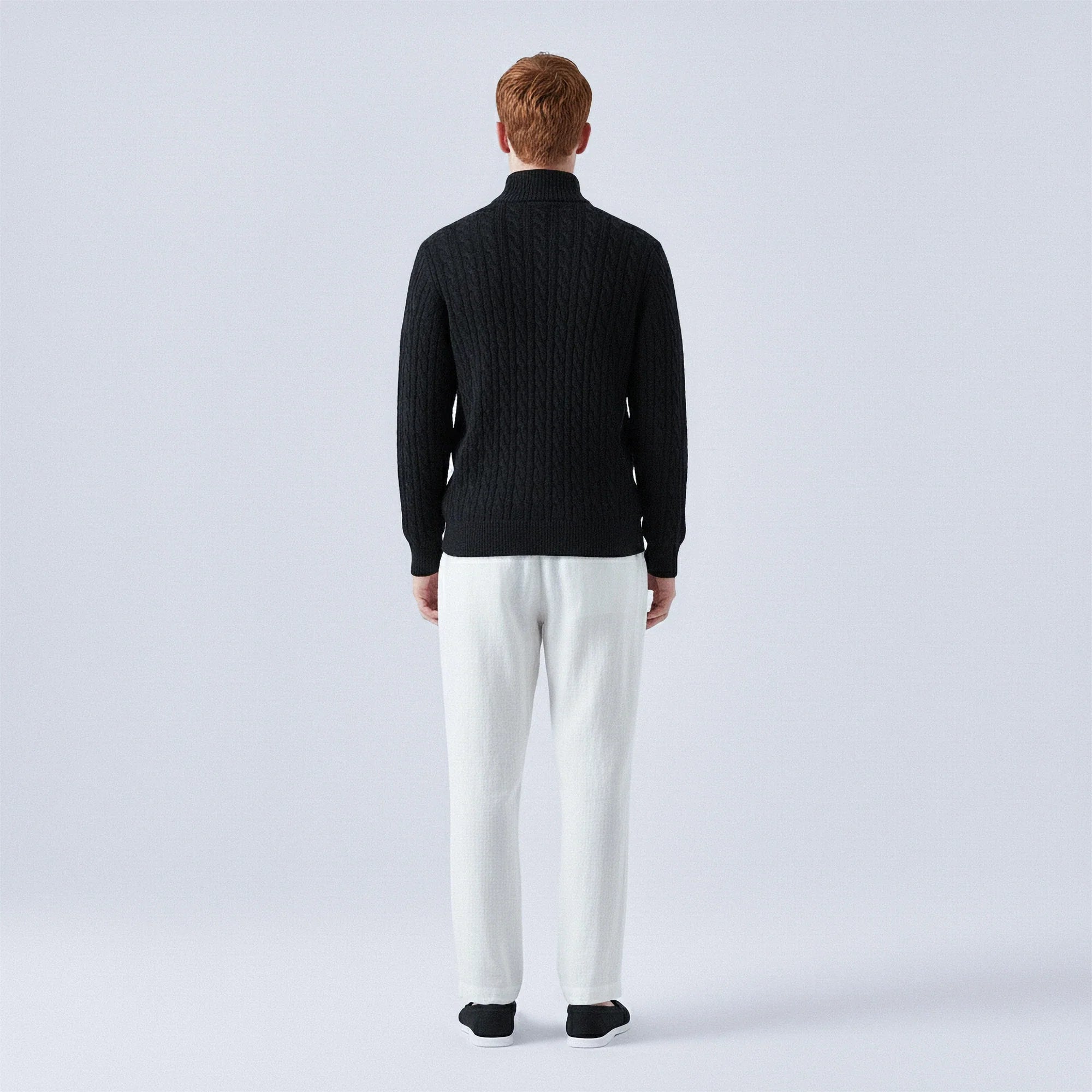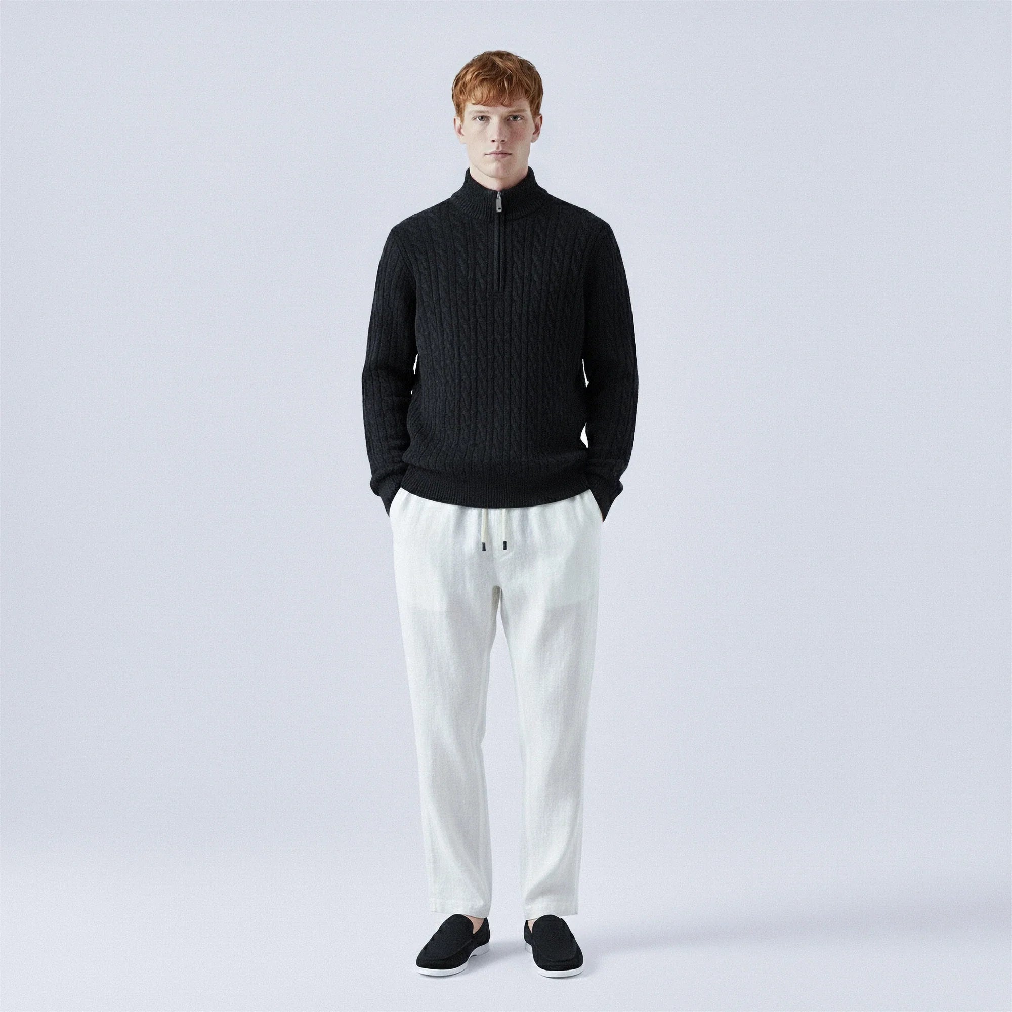 Maglione in lana al 100% a treccia con zip a mezza altezza