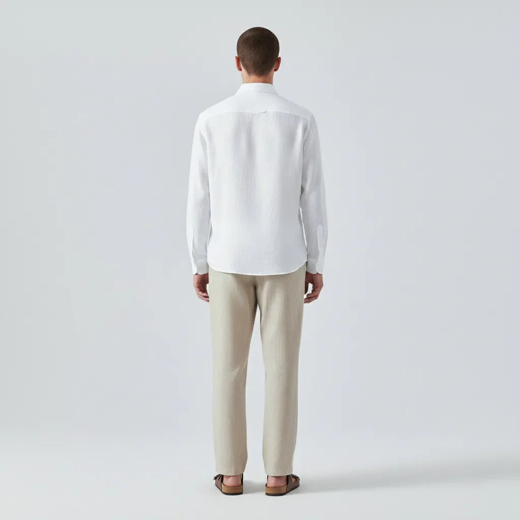 Realizzata con il lino più pregiato, questa camicia incarna un lusso discreto e una sofisticatezza senza sforzo. Un capo senza tempo che riflette una fiducia tranquilla e l’essenza dell’eleganza Old Money.