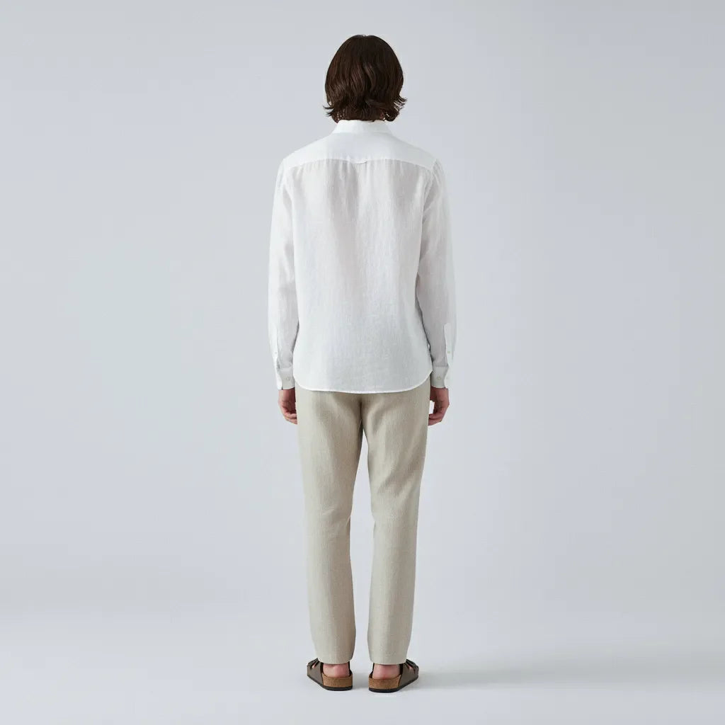 Realizzata in lino pregiato, questa camicia incarna un lusso discreto e una sofisticata semplicità. Un capo senza tempo che riflette sicurezza silenziosa ed esprime l’essenza dell’eleganza Old Money.
