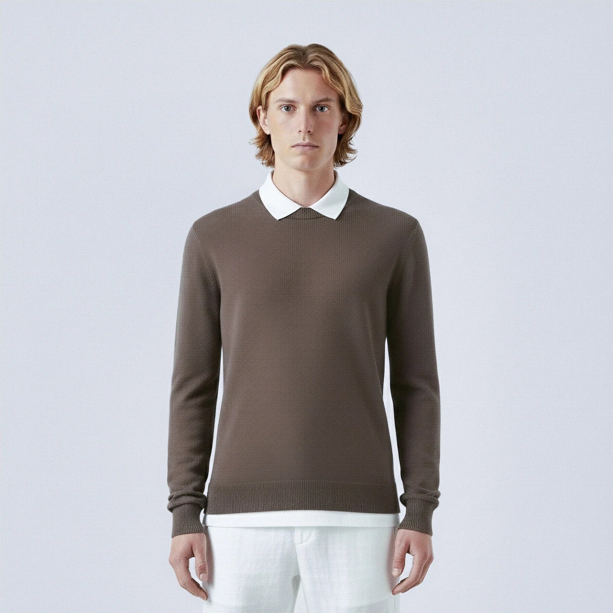 Questo maglione incarna l’eleganza senza tempo e il comfort raffinato. Ispirato all’estetica Old Money, è realizzato in lana pregiata per offrire qualità duratura e una finitura morbida e impeccabile.