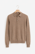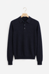 Confezionata interamente in Italia utilizzando cashmere di altissima qualità, si distingue per la mano straordinariamente morbida e per una struttura leggera ma avvolgente. Il collo polo a tre bottoni, sobrio e raffinato, definisce un equilibrio naturale tra formalità rilassata e stile classico.